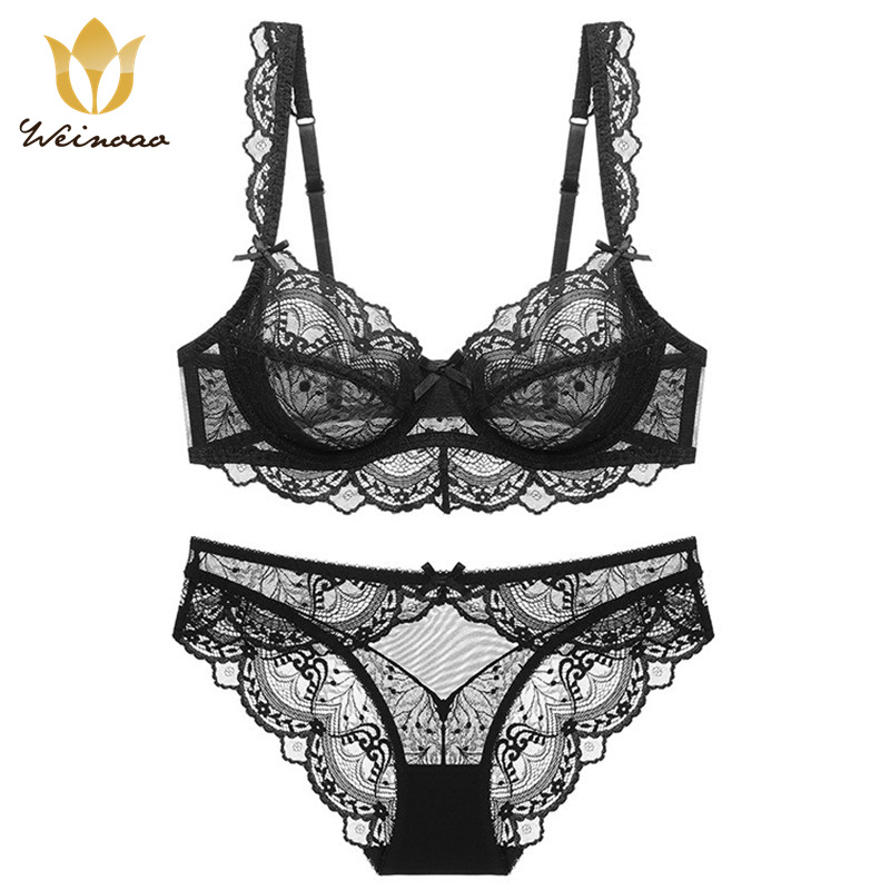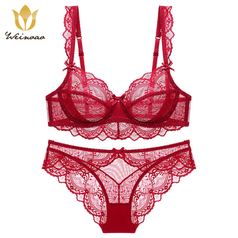 Large size bra set, women's sexy lace lingerie underwear, gathered adjustable bra