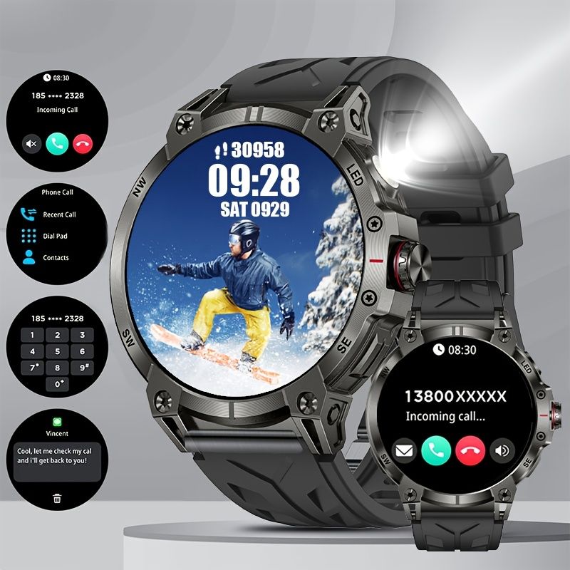LED Lighting Men's Smart Watch Heart Rate Monitoring Bluetooth Call 760mAH Large Battery GPS Trajectory IP68 Waterproof Fitness Smartwatch