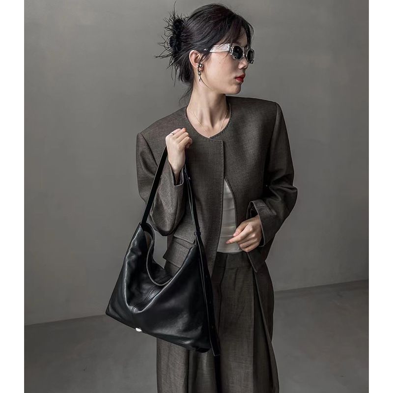 Leisure crossbody bag, large capacity vegetable tanned leather bag, 2024 new genuine leather shoulder tote bag, high-end feeling armpit bag