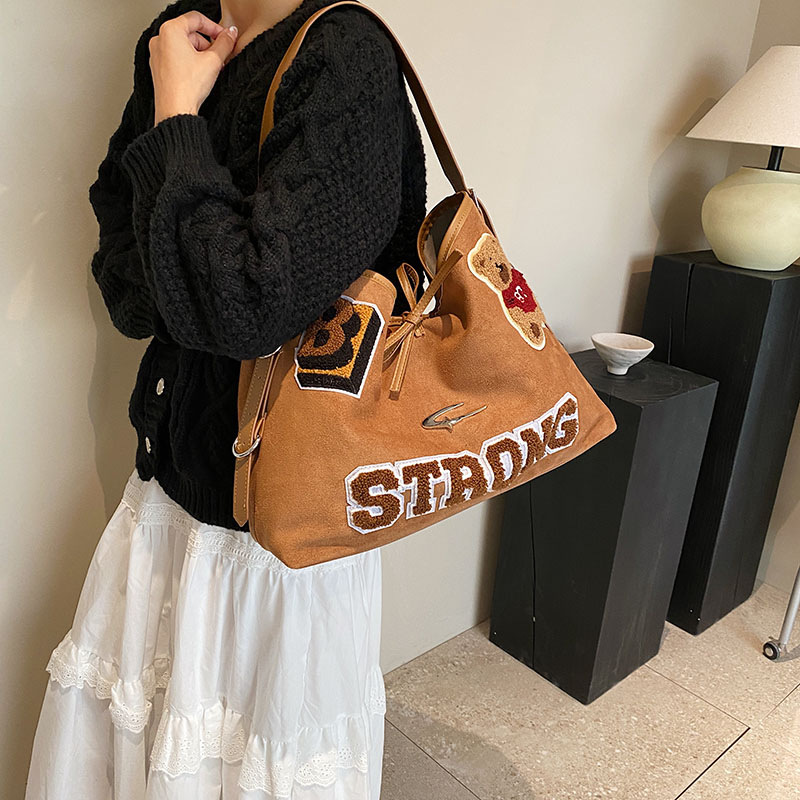 Letter Bag Women's Large Capacity Shoulder Bag Plush Smiling Face Handbag Women's Handbag Cartoon Crossbody Bag