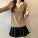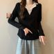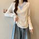 Light Blue Shirt Collar Regular Shoulder Long Sleeve T-Shirt for Women, Autumn New Plus Size Unique Fake Two-Piece Top
