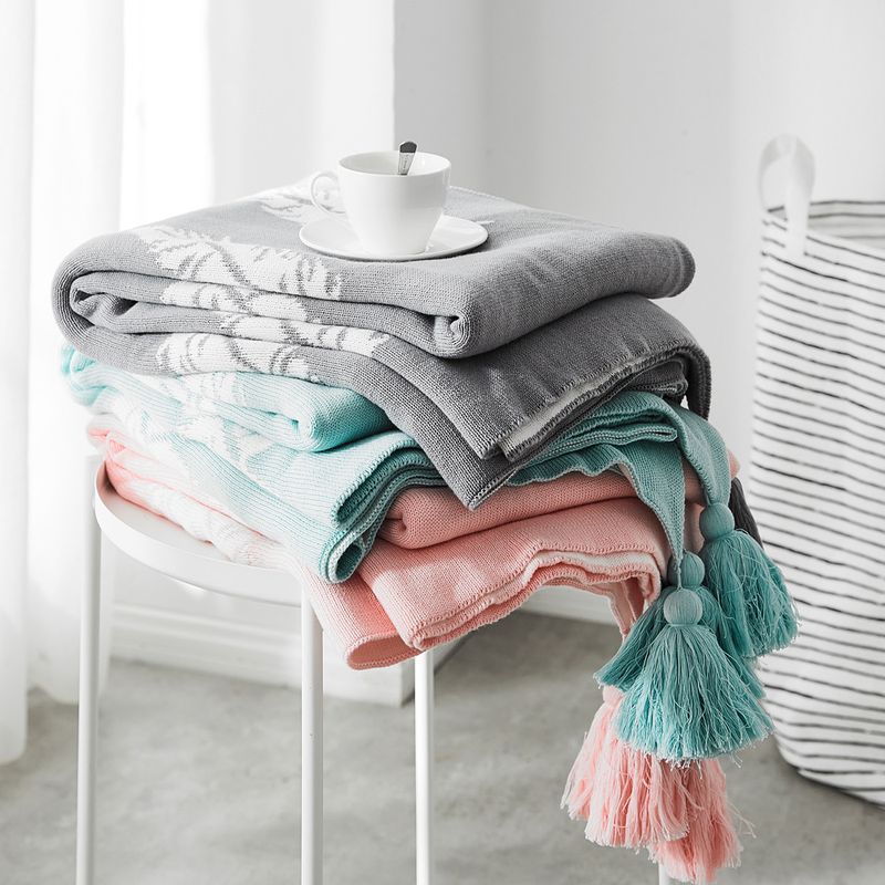 Light Luxury Nordic Simple Cotton Feather Knitted Blanket American Tassel Color Air-conditioning Blanket Model Room Bed Cover