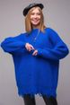 Loose solid color perforated sweater, mid to length, autumn/winter 2024 new item, round neck pullover, long sleeved