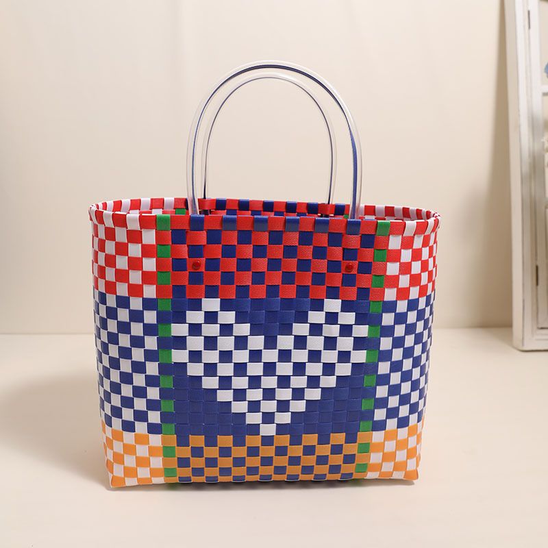 love plastic woven bag large capacity hand carrying vegetable basket high sense handbag all-matching bag for women