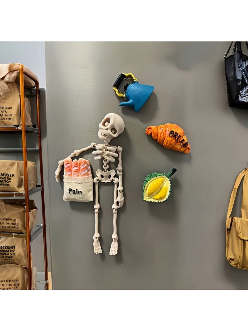 Magnetic Action Skull Fridge Magnet - Retro Fantasy Theme, Durable Plastic Octagonal Design, - Kitchen & Dining Room Decor, Cute Fridge Magnet, Season