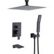 Matte Black 12 inches Rain Shower Faucet Sets with Waterfall Tub Spout and Handheld Shower Head
