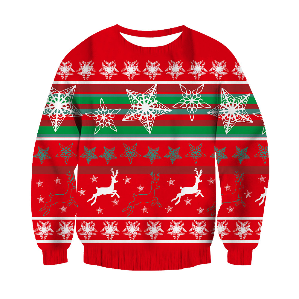 Hot And Women's 3D Digital Printed Snowflake Men's Long Sleeved Round Neck Sweatshirt