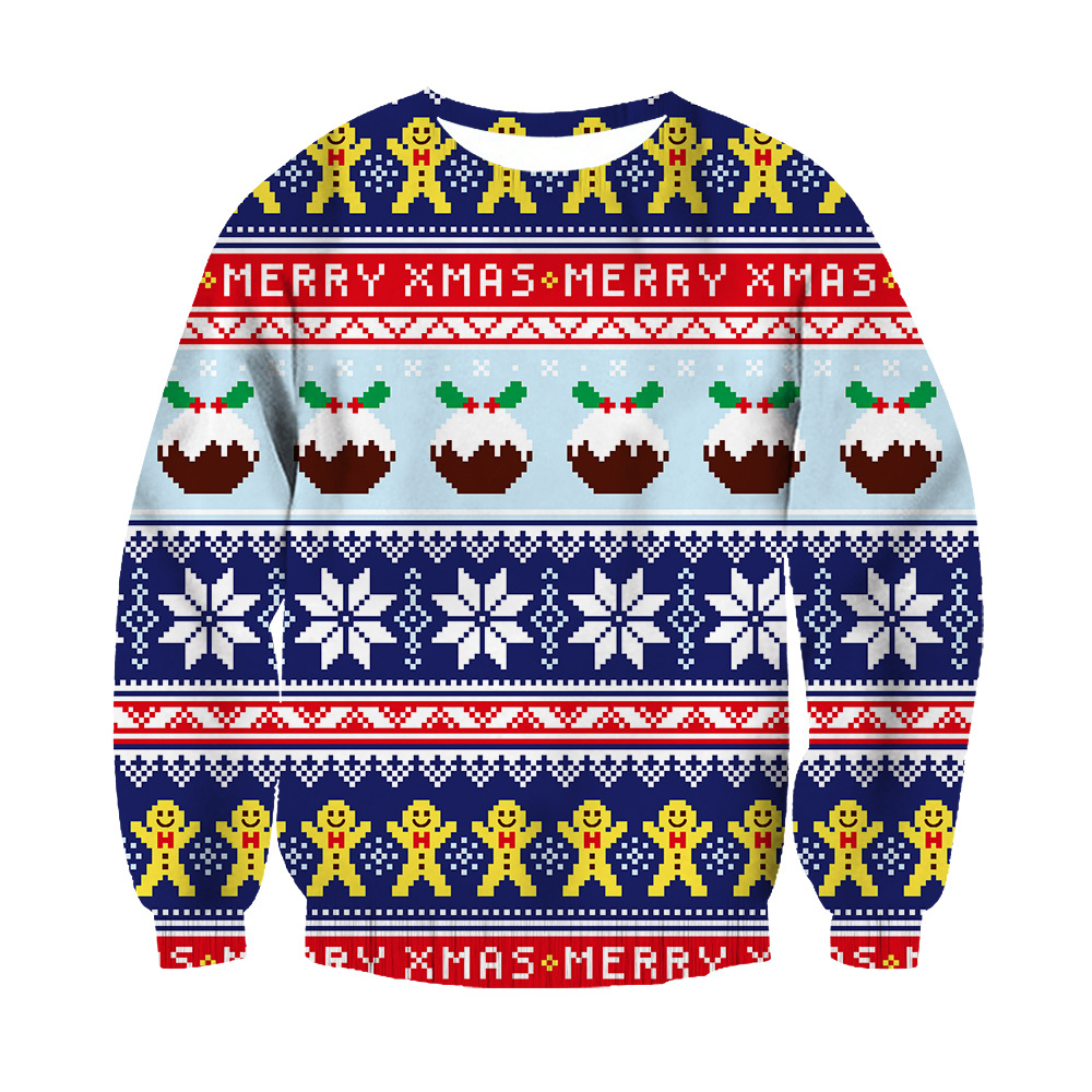 Hot men's and women's 3D digital printed snowflake men's long sleeved round neck sweatshirt
