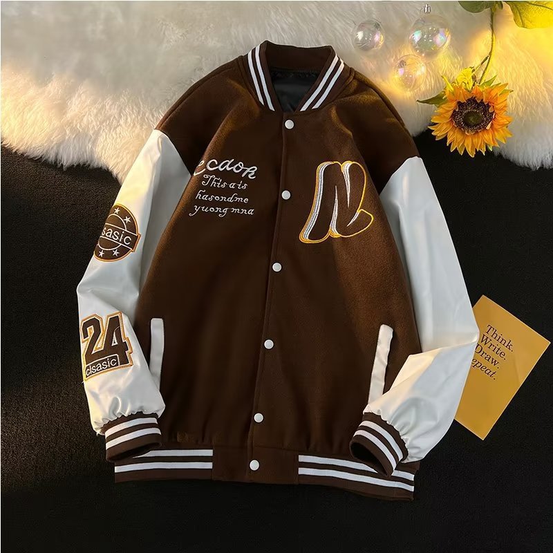 Men's Clothing Baseball jacket men's spring and autumn couples wear spring boys loose trendy insPU leather jacket