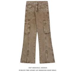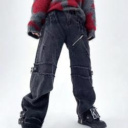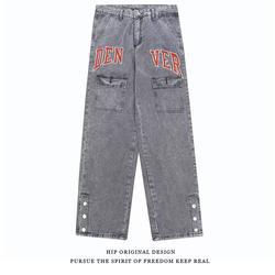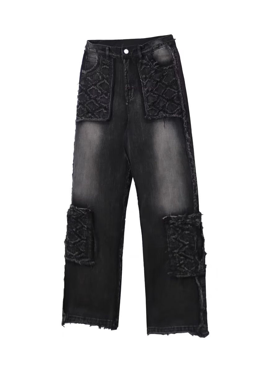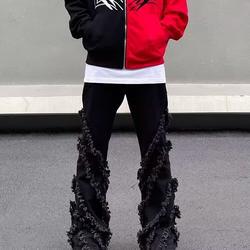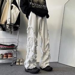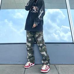 Men's Clothing High street washed distressed patchwork lumberjack jeans for men Retro fashion trend ink splashed print wide leg trousers