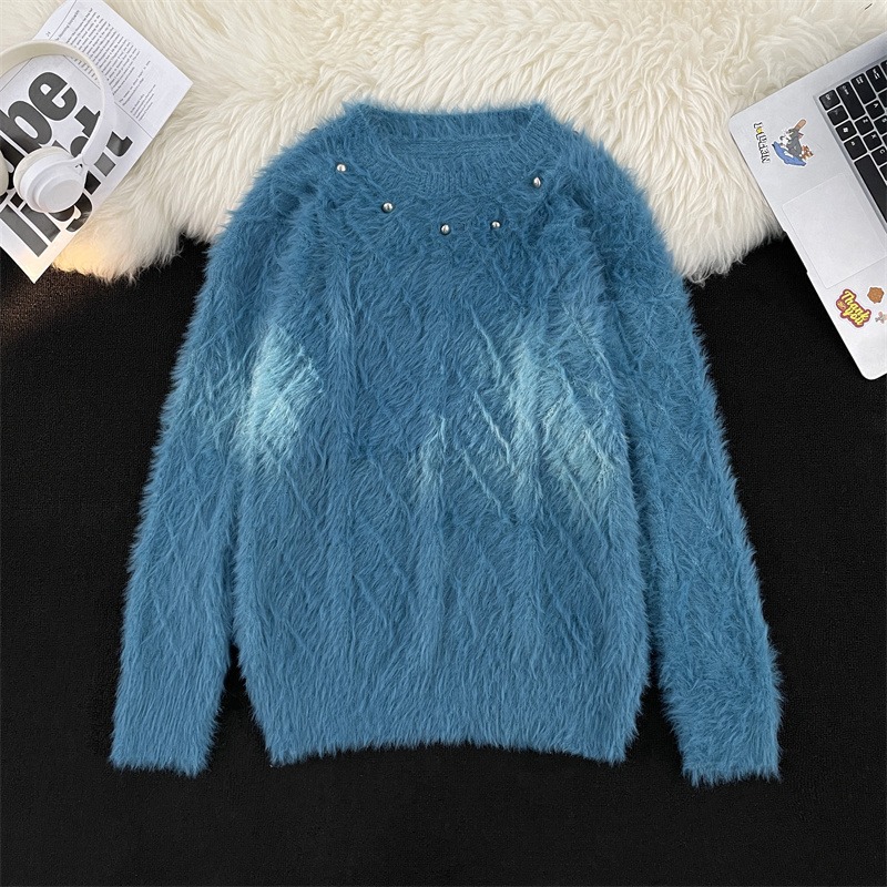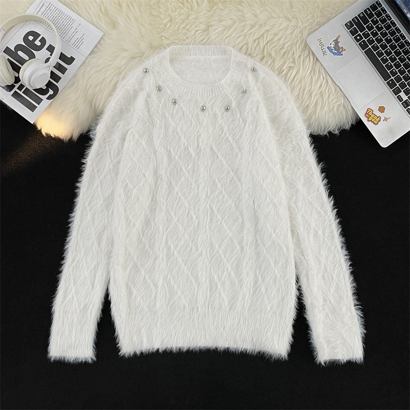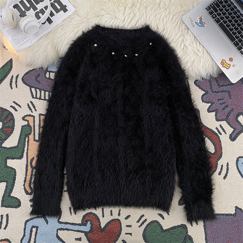 Men's Clothing mink sweater button flower design beaded high weight knitted sweater furry pullover lazy trend men