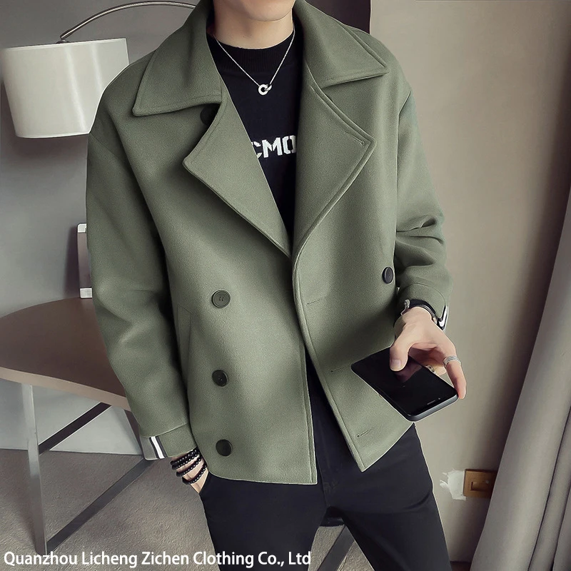 Trendy Brand Autumn Winter New's Cropped Jacket mens Korean Style Casual Fashion Woolen Overcoat Warm Net Red Version For