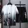 Men's Ice Silk Short-Sleeved T-Shirt Suit Men's Large Size Set Of Casual Handsome Matching Clothes T