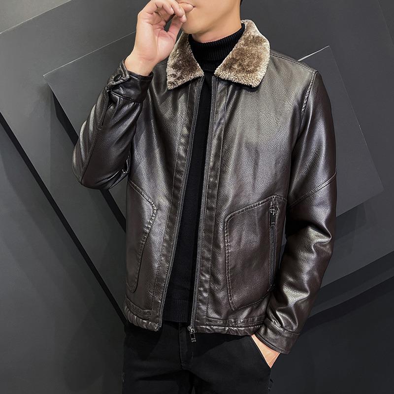 Men's Clothing leather jacket plus velvet thickened autumn and winter jacket leather jacket handsome casual versatile lapel leather jacket