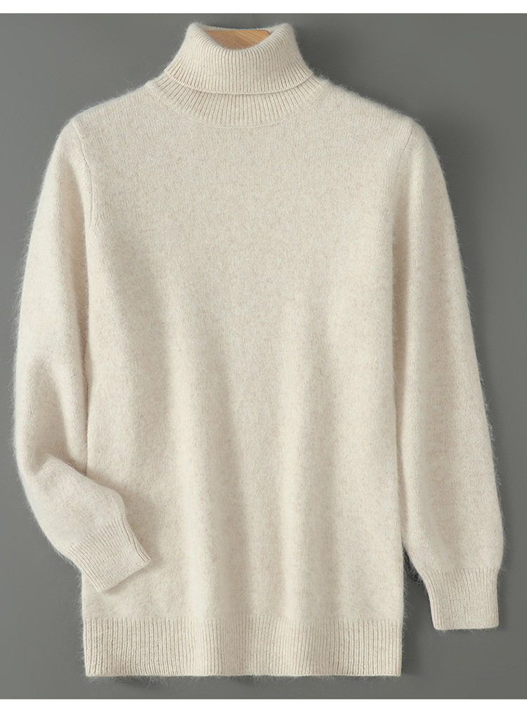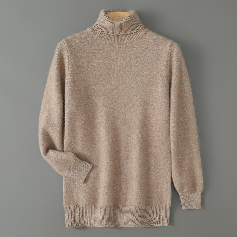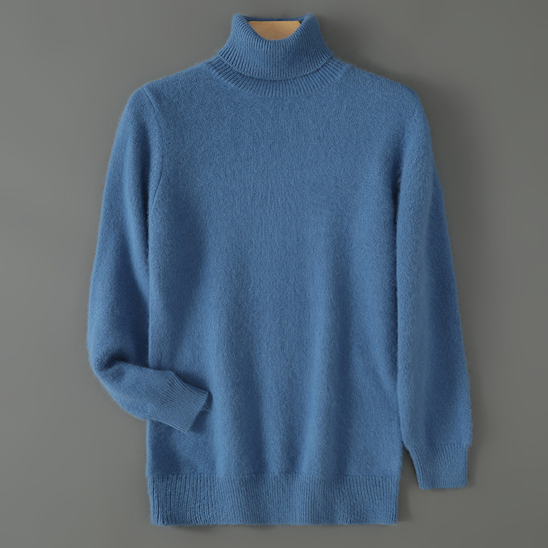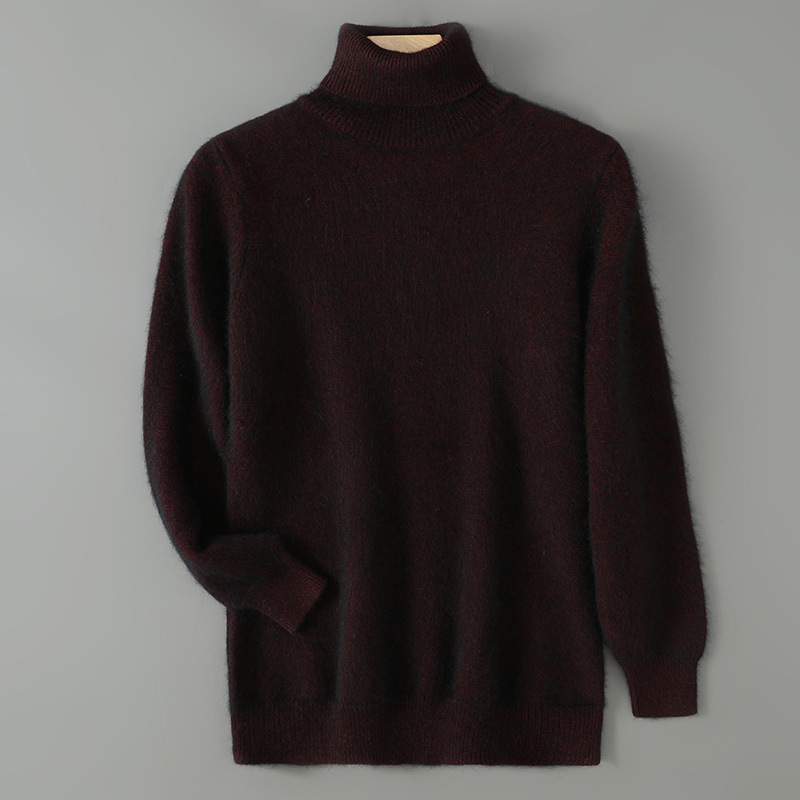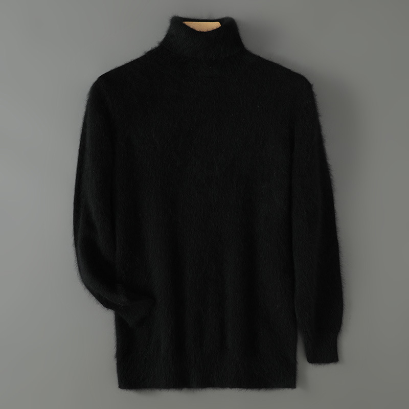 Men's mink knitted with high collar and base, seven needle thick rabbit fur plus size solid color wool sweater