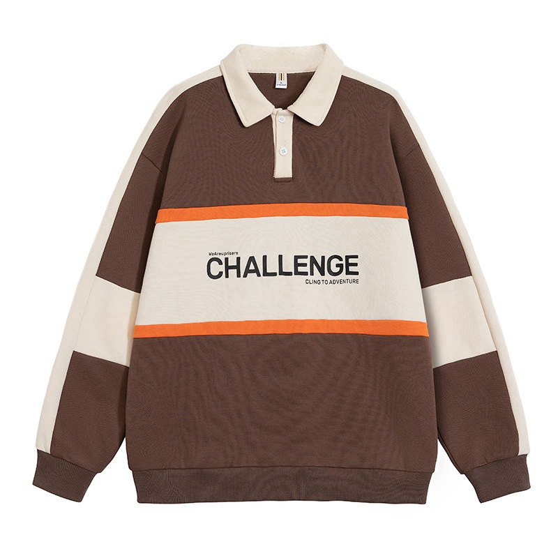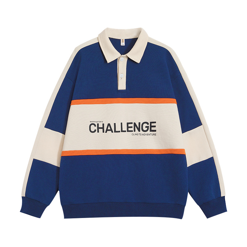 2024 New contrasting color patchwork polo shirt with loose collar and trendy sweatshirt for men