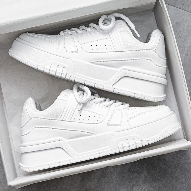 Men's Shoes Spring Versatile Casual Sports Black Board Shoes Men's Thick Sole Raised Leather Surface Waterproof And Anti Slip Work Trendy Shoes