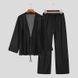 Men's Thin Solid Color Sexy Deep V-Lace Long sleeved Cardigan Shirt Perspective Pants Fashion Set