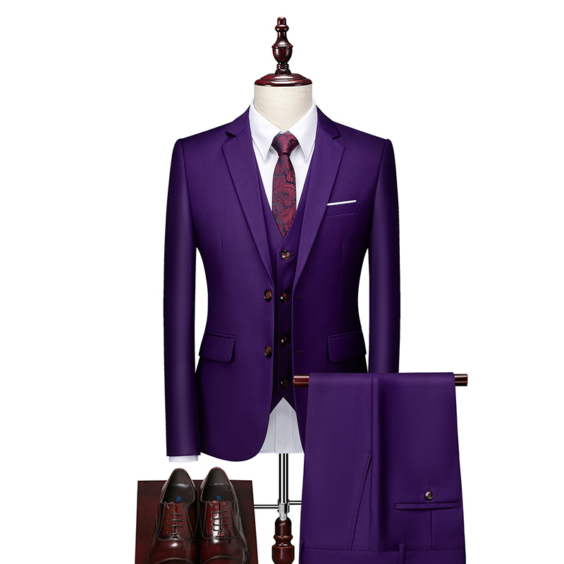 Men's Clothing Solid Color Two Button Suit Three Piece Wedding Dress Business Casual Suit