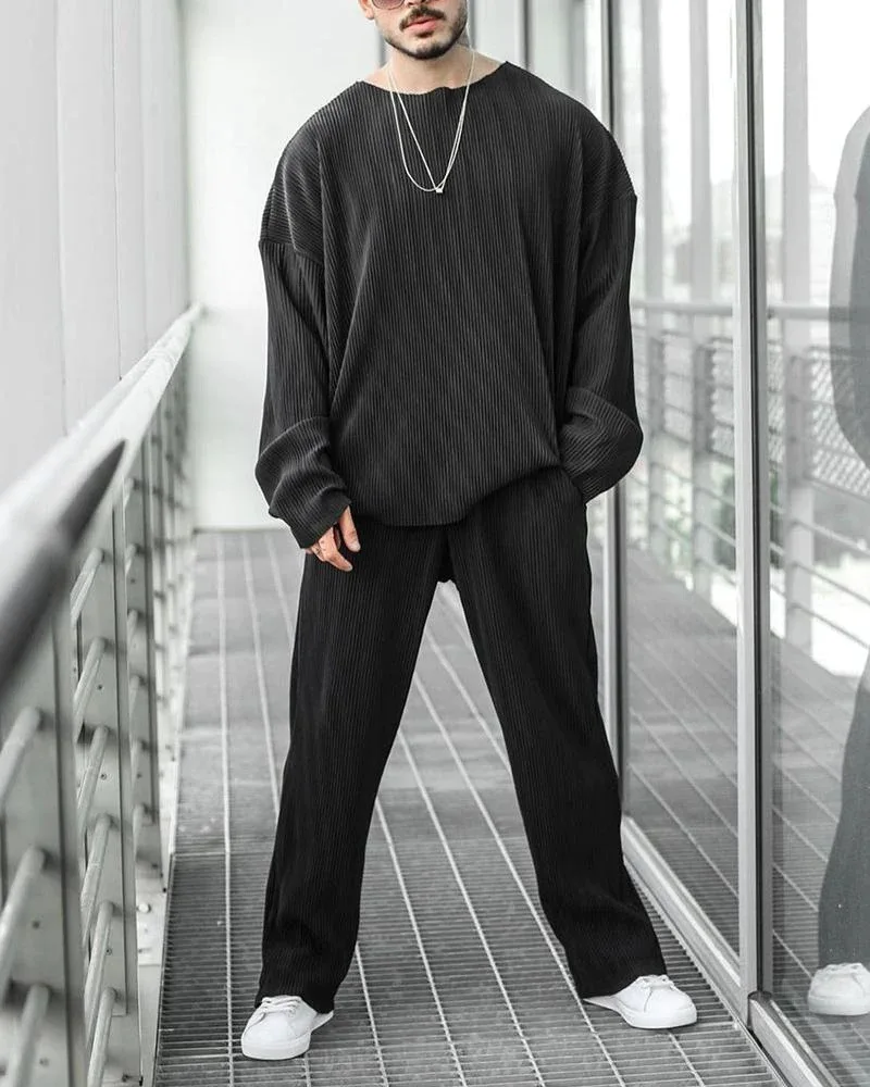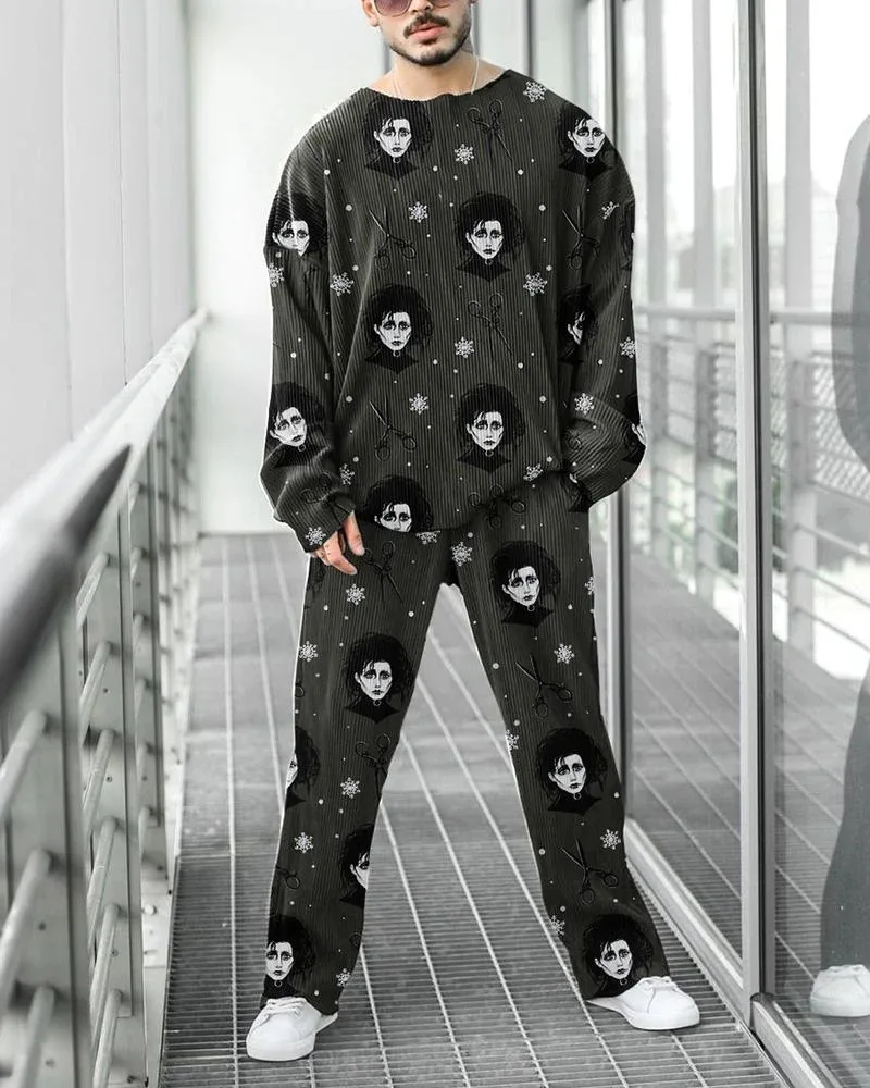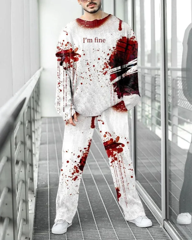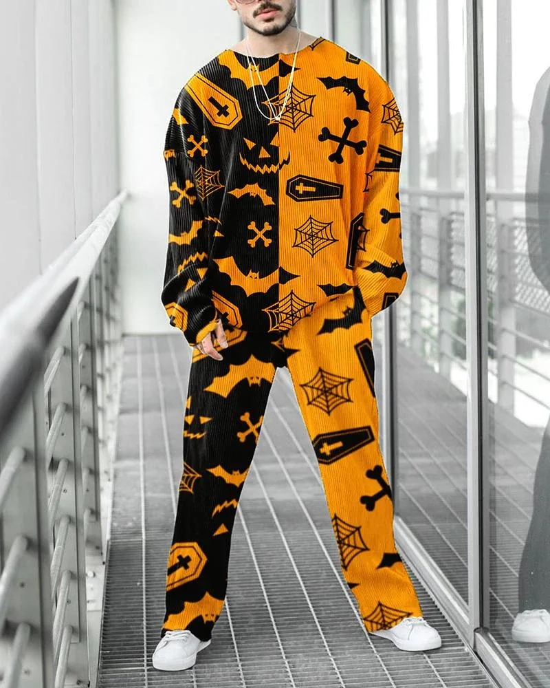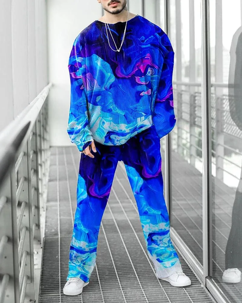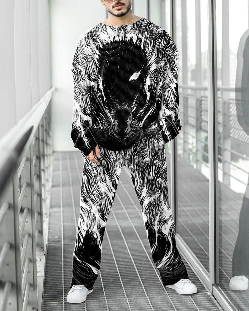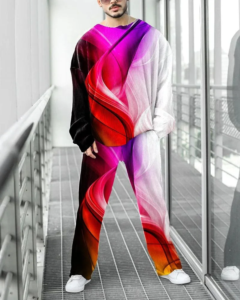 Men's Tracksuit Set Crew Neck Long Sleeve Sweater Sweatpants Two-piece Outfits Striped Color 3D Printed Sports Loose