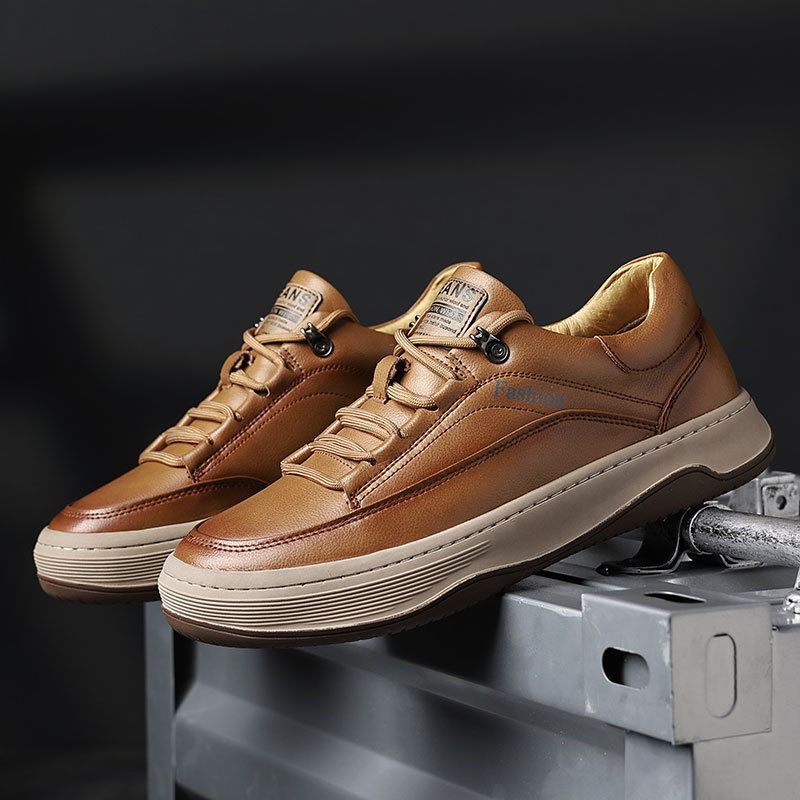 Men's shoes, trendy shoes, spring new leather sports and leisure shoes, board shoes, men's tilted heads, comfortable and versatile clown shoes