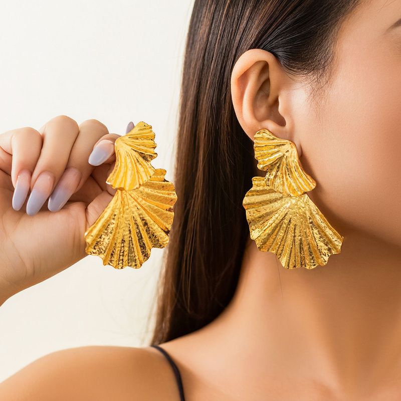Metal Double Fan-Shaped Stud Earrings, Runway Model Style,Temperament Trendy Item