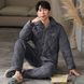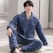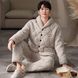 Minimally designed pajamas for men in winter, with thickened coral fleece and three-layer cotton jacket for home wear. Warm flannel set for autumn and winter