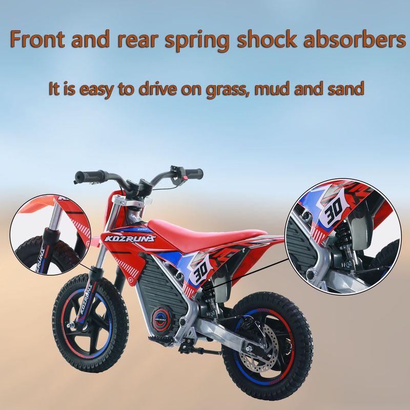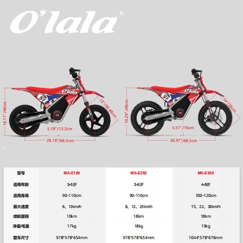 MX-E250 12 Inch For 3-6 Year Old Children Off-road Racing, Maximum Speed 25km/h 250W Mid-mounted Brushed Motor Range 18km Rear Mechanical Disc Brakes And Spring Shock Absorbers.