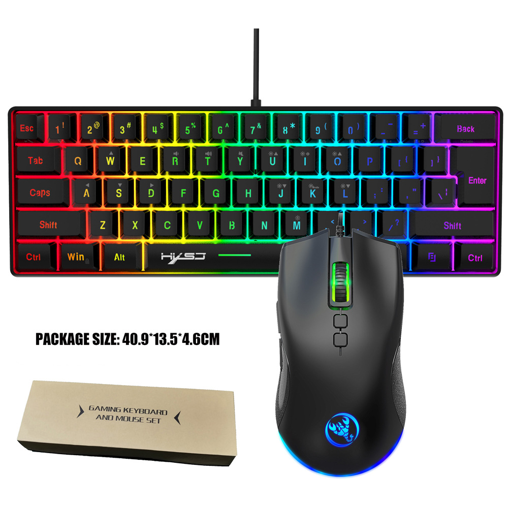 New 61keys luminous set, wired mouse, office gaming keyboard
