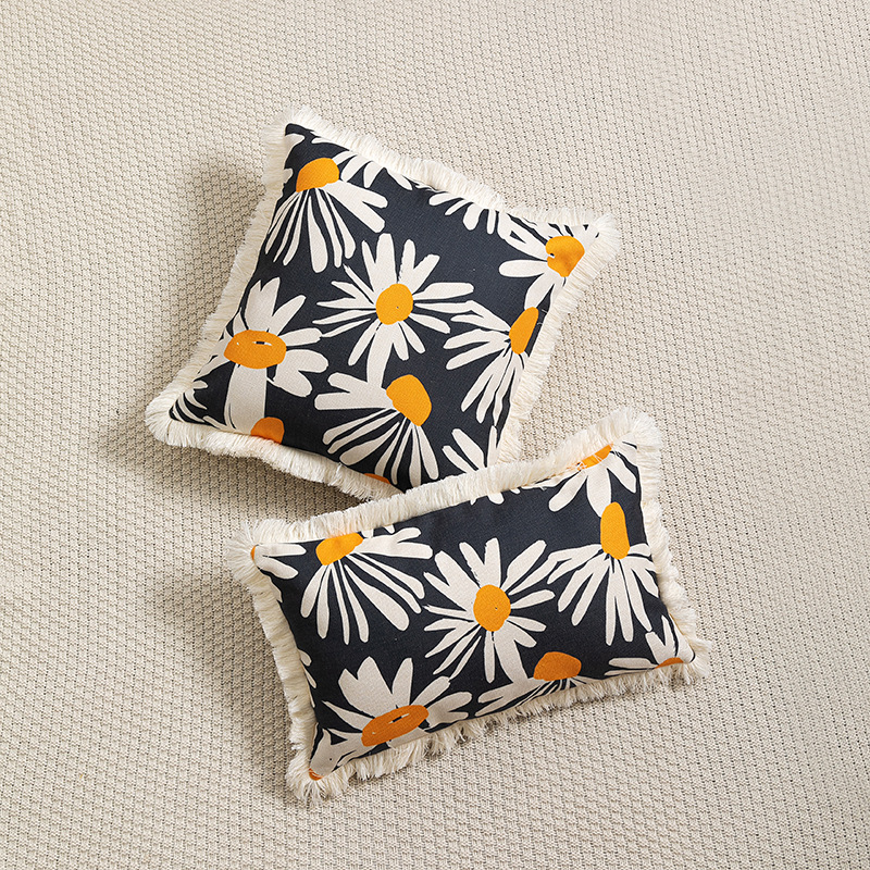 New Arrival Tassel Edge Decorative Plant Flower Cotton Linen Printed Pillowcase Home Decorative Sofa Cushion Cover