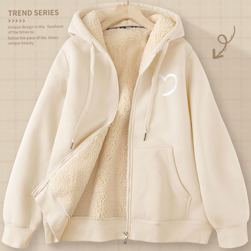 New cardigan hooded sweatshirt for men, autumn and winter loose lambskin jacket, warm top 12