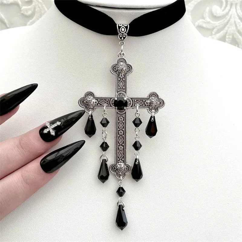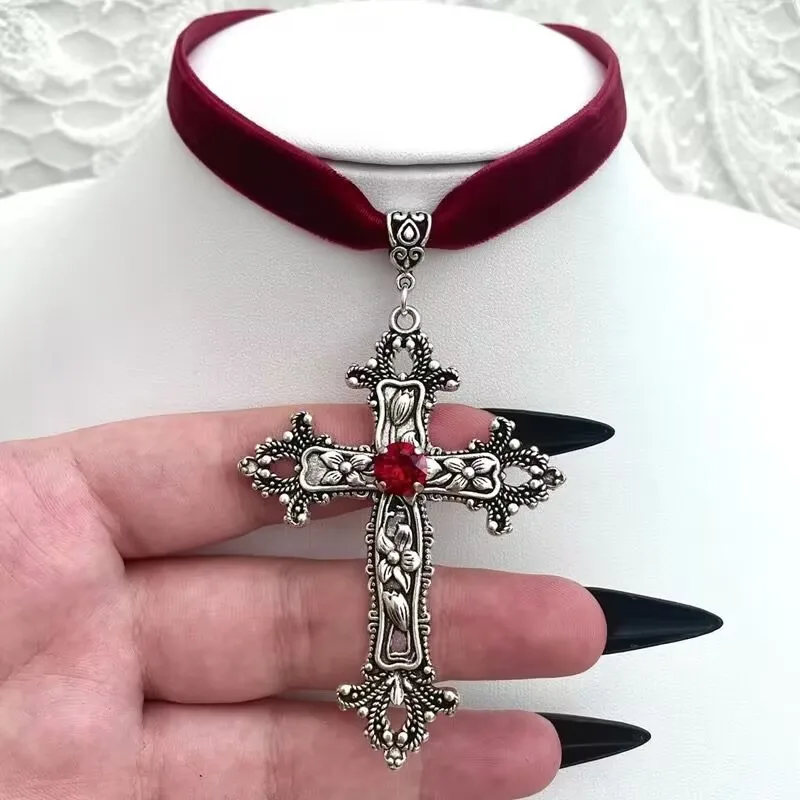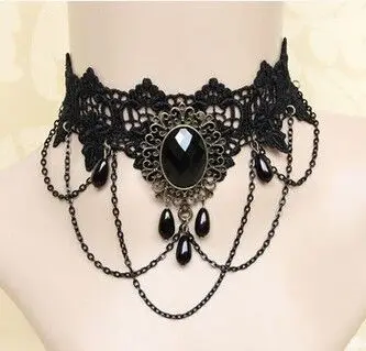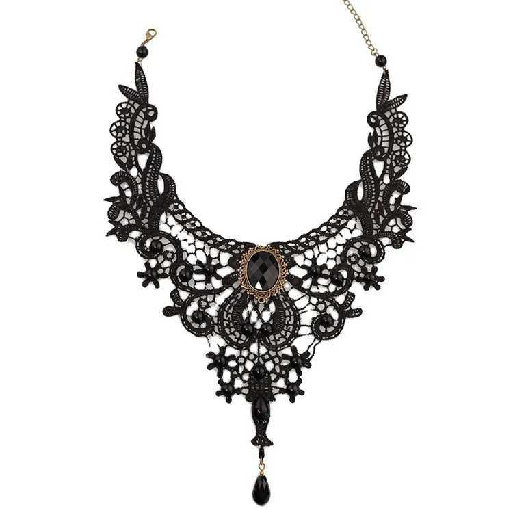 New Cute Collar Lolita's Handmade Vintage Lace Heart Necklace for Women Gothic Bow Knot Necklace Girls Uniform Accessories