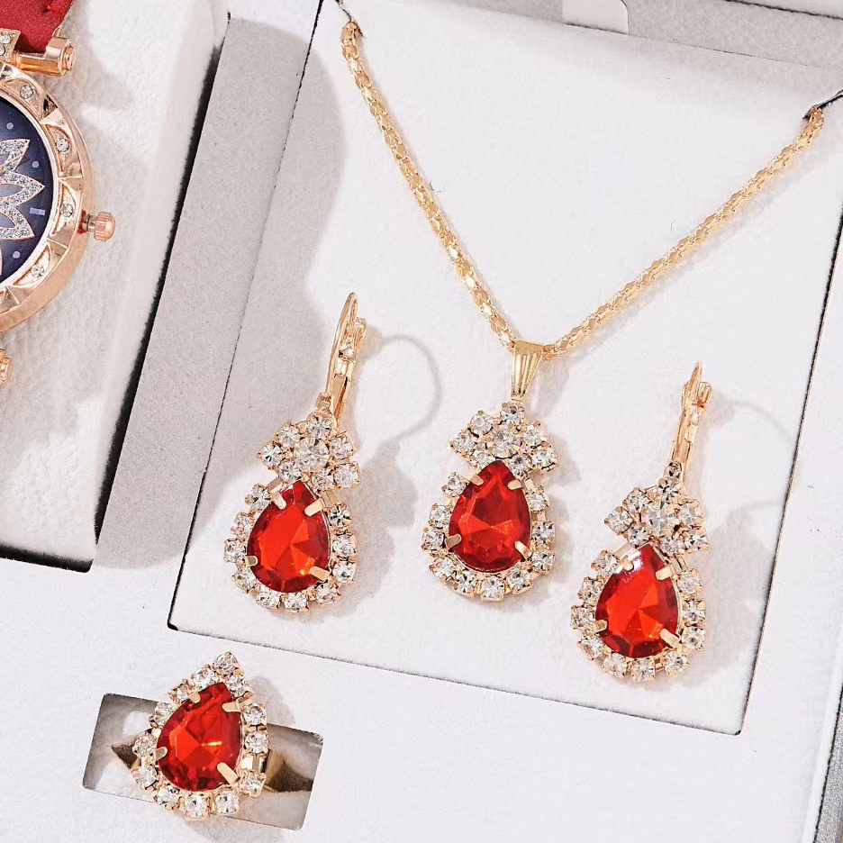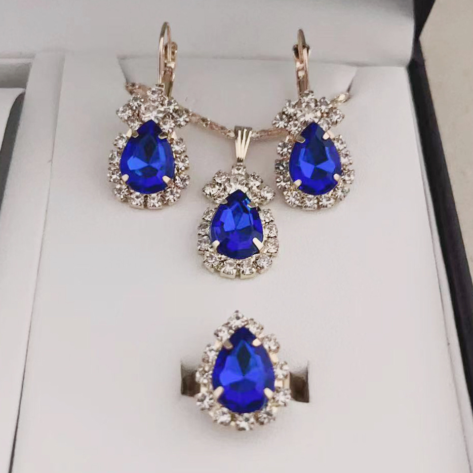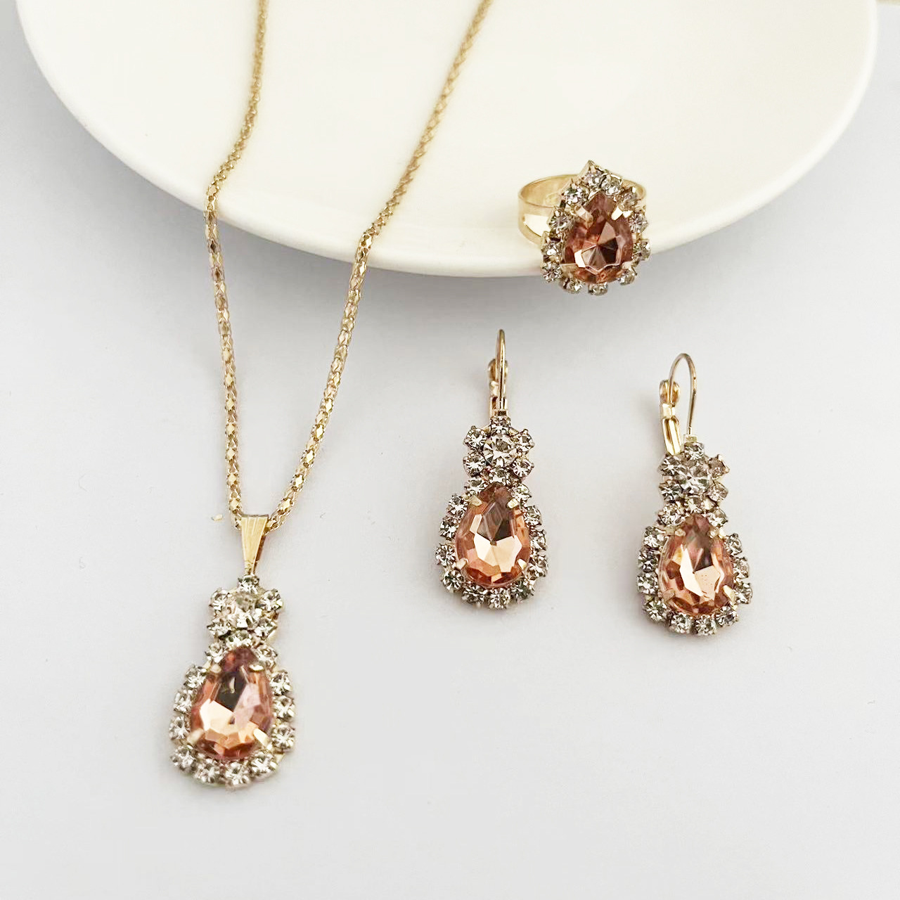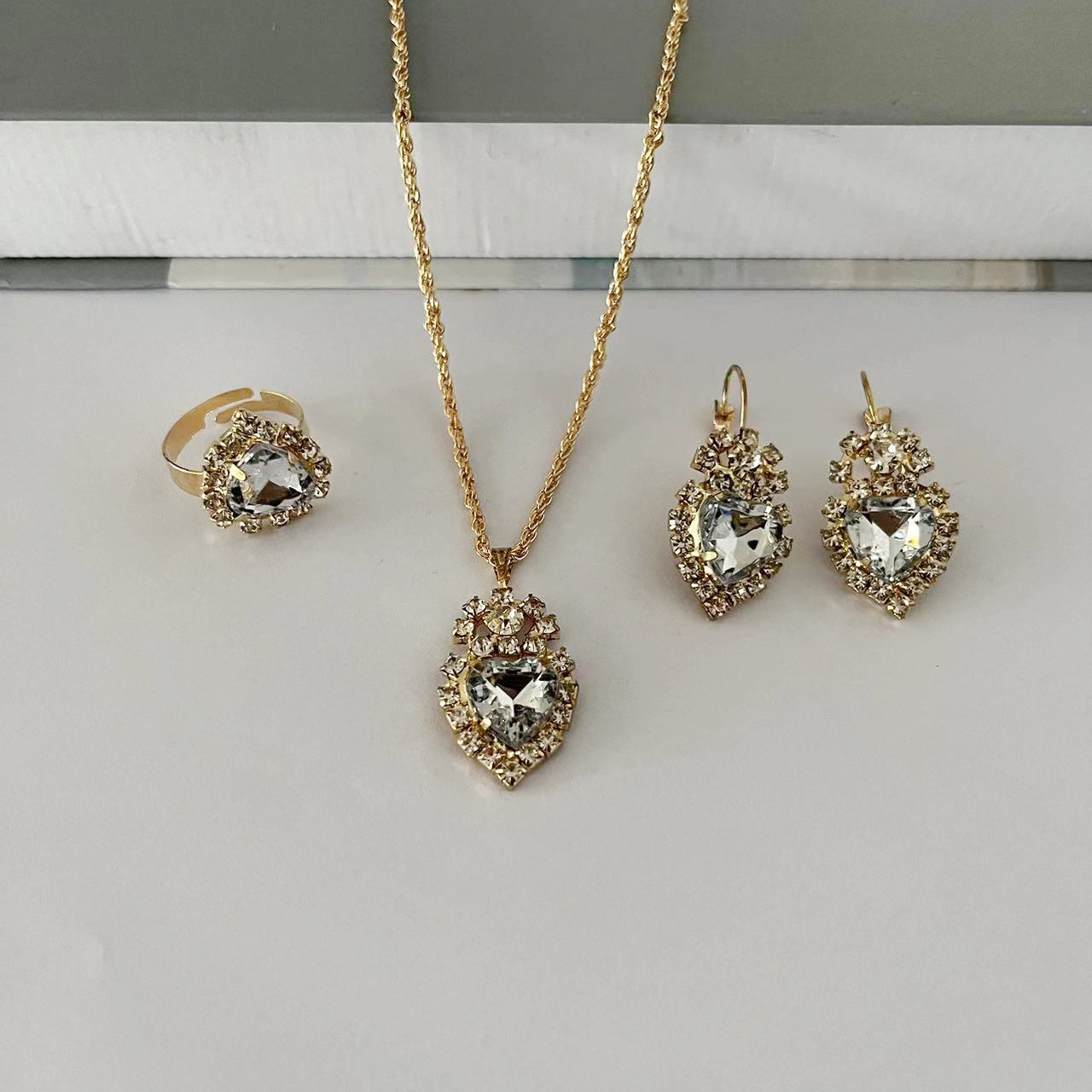 New Diamond Heart Pendant Necklace Earrings Banquet Versatile Three piece Jewelry Set