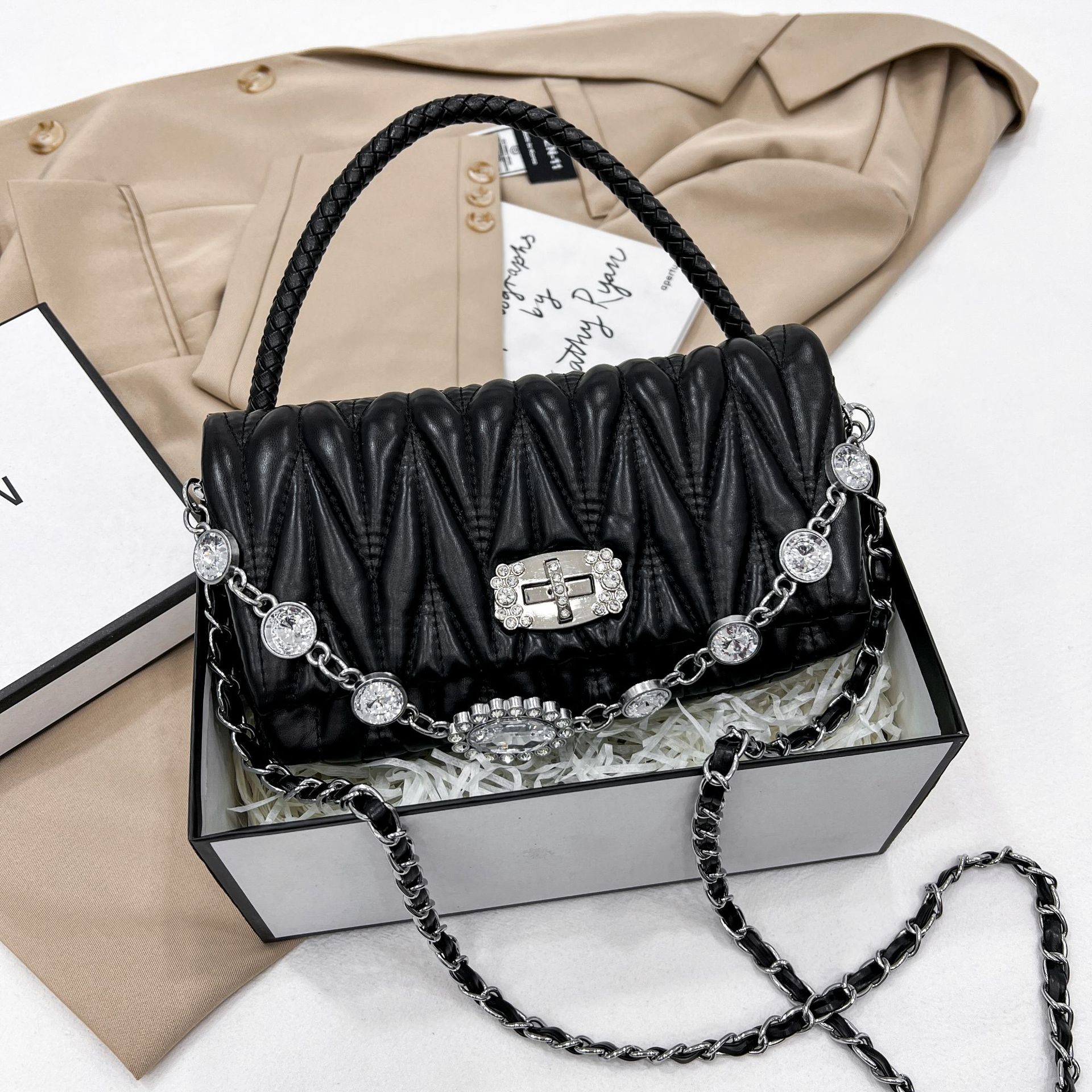 New Full Diamond Chain Fashion Versatile temperament Trendy High quality Small Fragrant Wind Cloud Duo Bag Pleated Single Shoulder Crossbody Bag