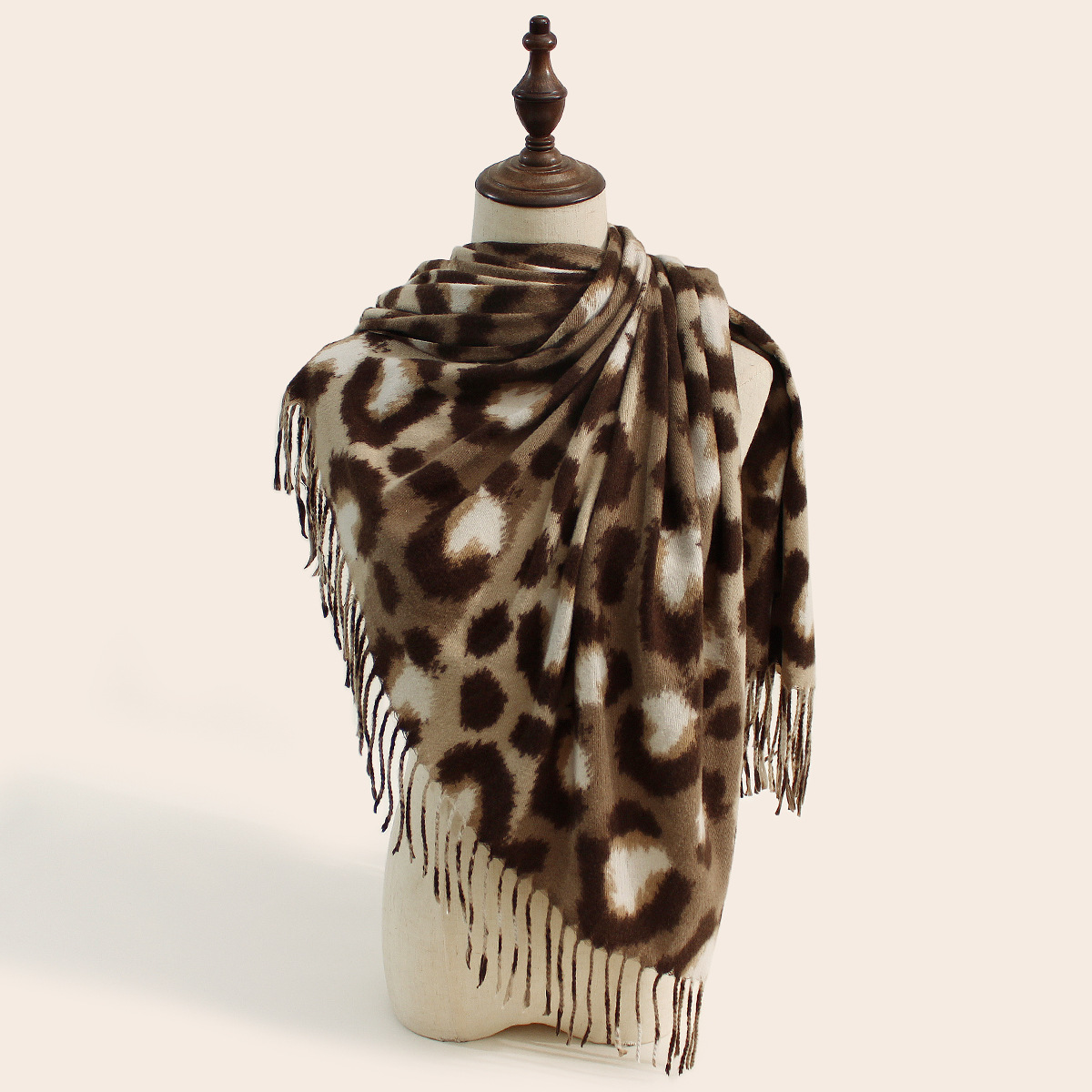 New Leopard Print Scarf For Autumn And Winter Women's European And American Warm And Versatile Scarf Comfortable And Fashionable Cashmere Shawl
