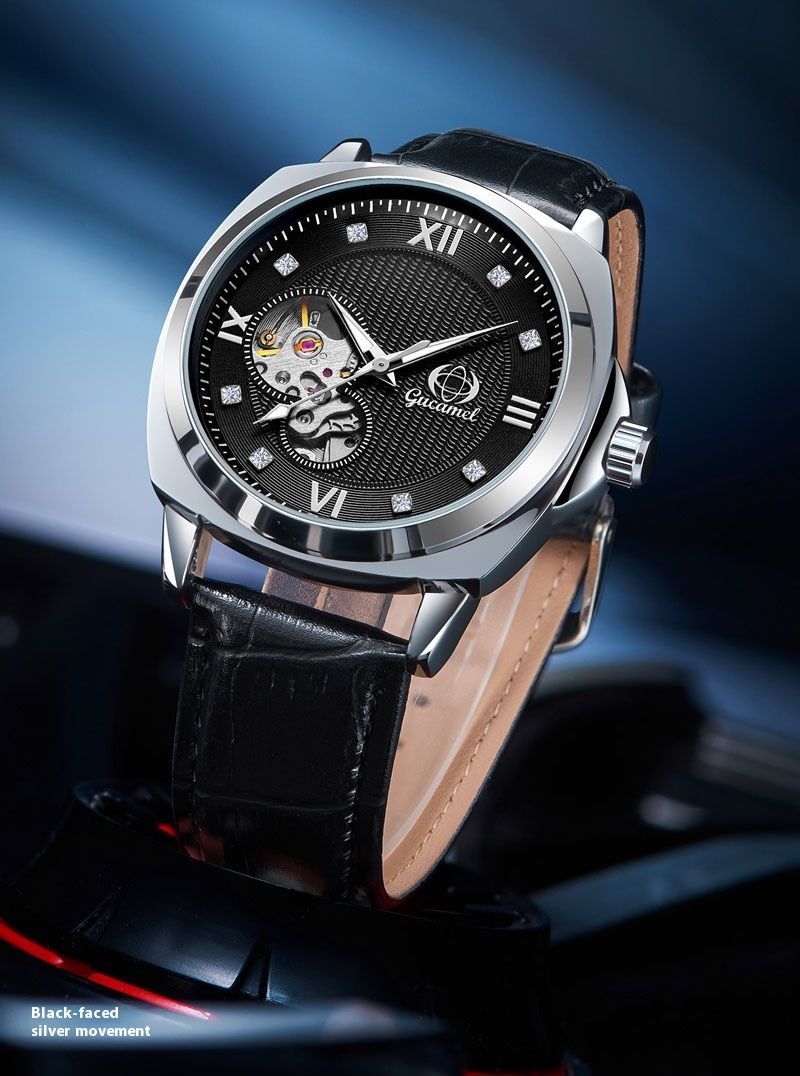 Automatic watch Gutuo Men's fully automatic mechanical watch Business fashion diamond inlaid watch Nightlight creative watch