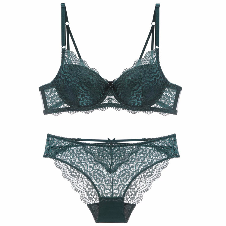 New sexy lace embroidered lingerie with thin top and thick bottom gathered for women's bra set