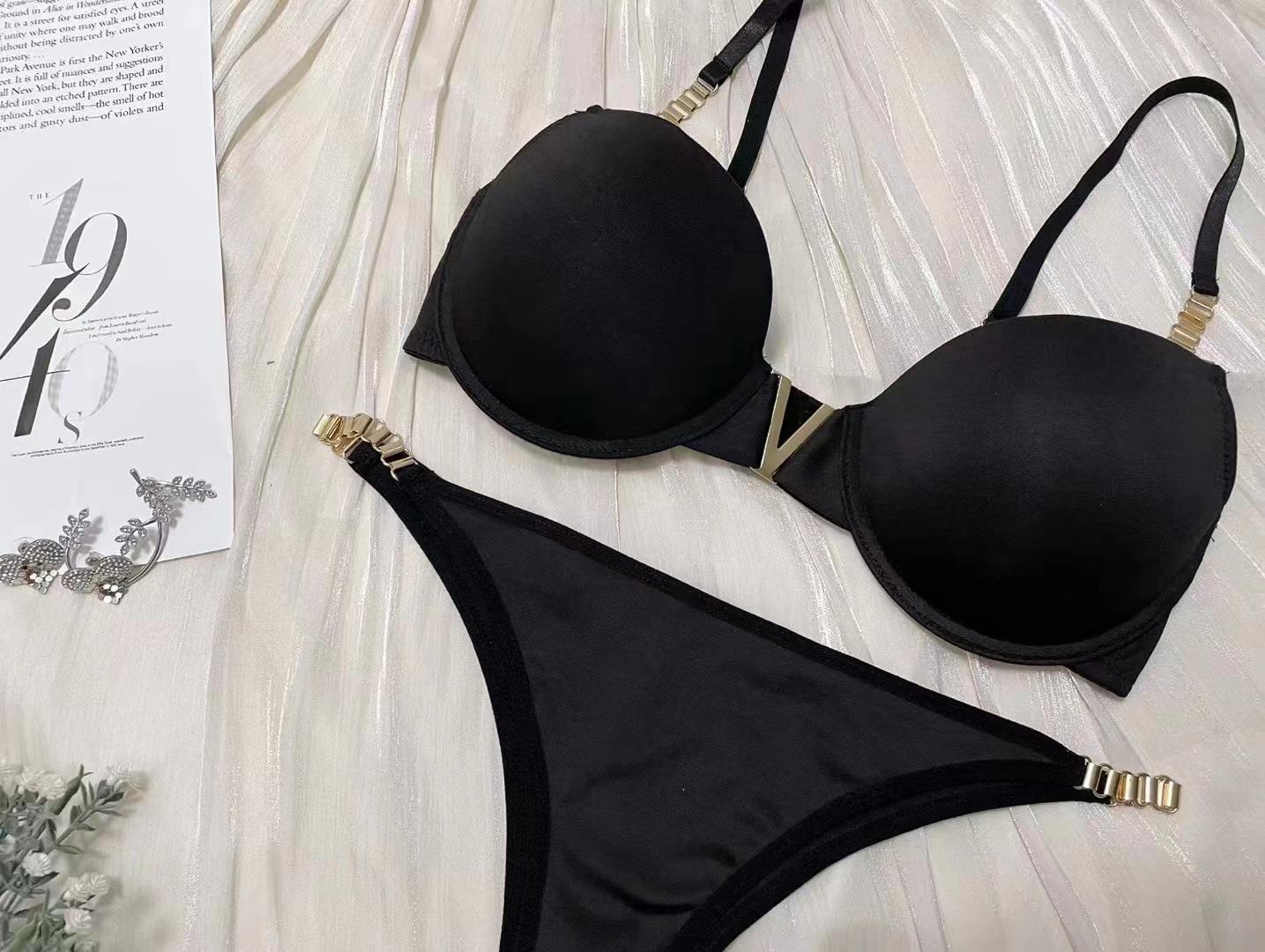 New Sexy Smooth European Size Underwear Women's Bra Ring Decoration Shoulder Strap Bra Set