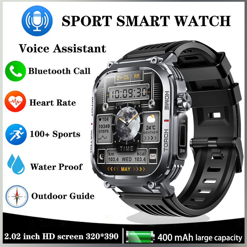 New Smart Watch Men 3ATM Waterproof 2.02" With Compass And LED Flashlight Sports And Fitness Tracking Heart Rate