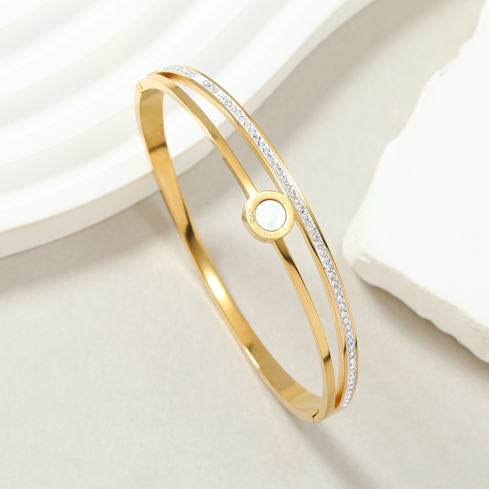 New Titanium Roman Digital Women's Shell Round Sign Diamond Stainless Steel Fashion Bracelet Decoration