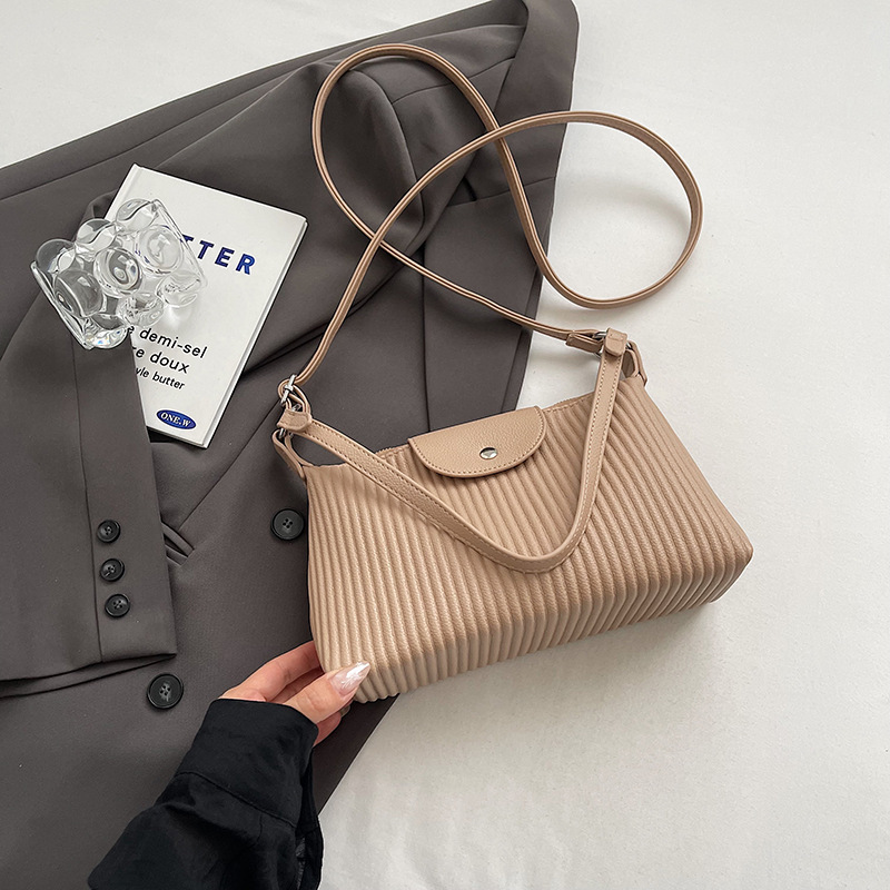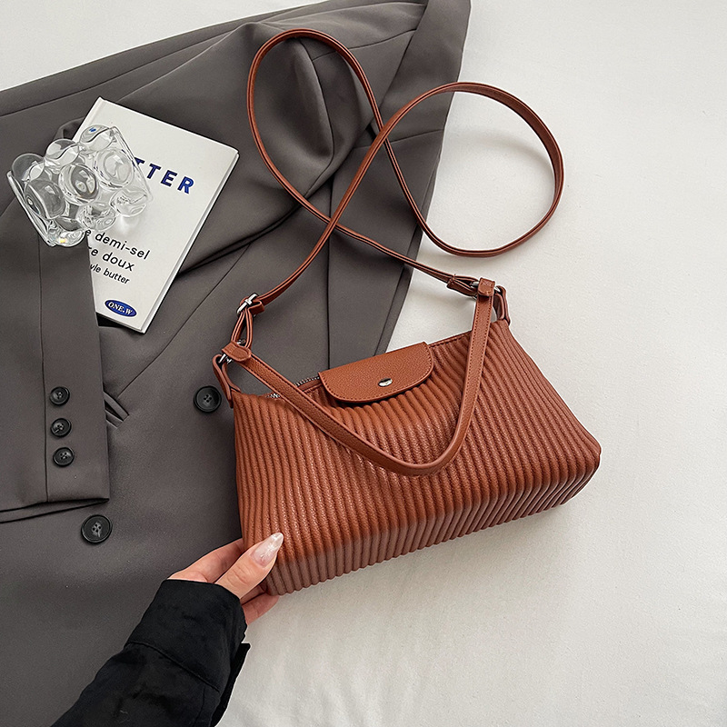 Niche design pleated striped 2024 new women's versatile and simple single shoulder pillow crossbody armpit bag