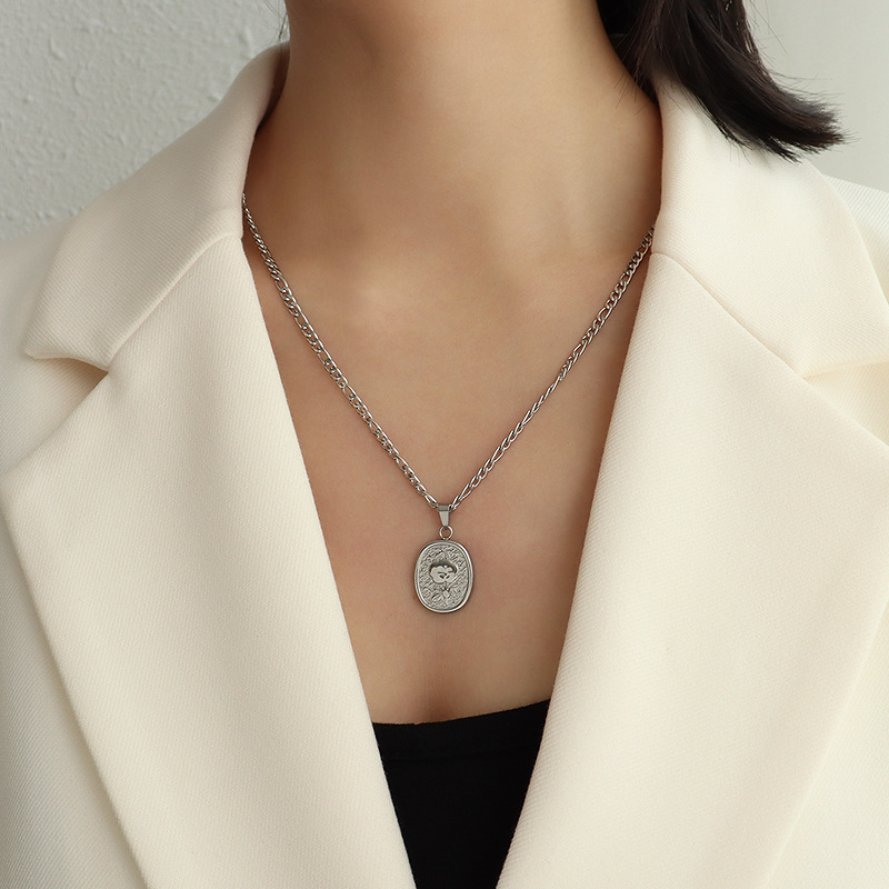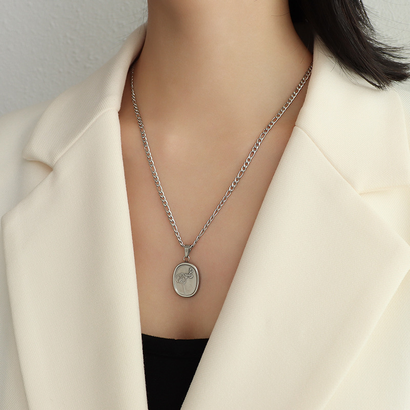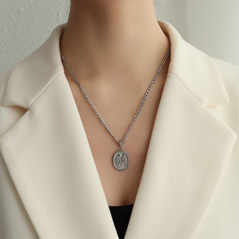 Niche Gold Coin Geometric Oval Pattern Withered Rose Necklace Set