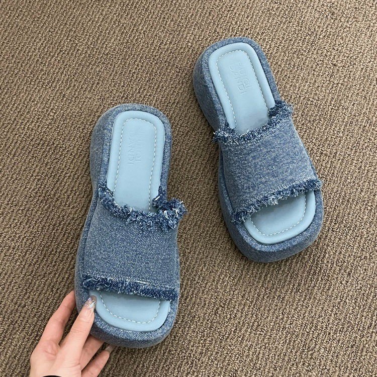 Niche simple denim fashion platform thick-soled wedge sandals for women 2023 new open-toe temperament beach slippers