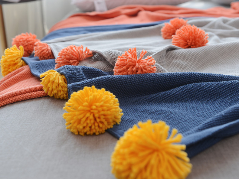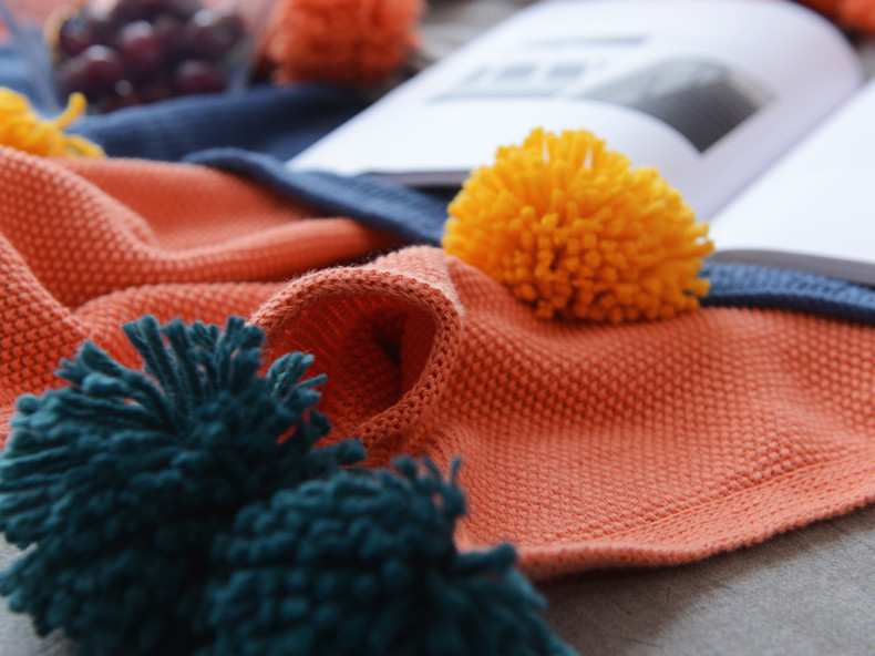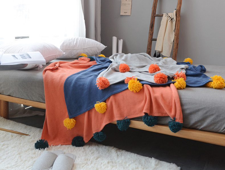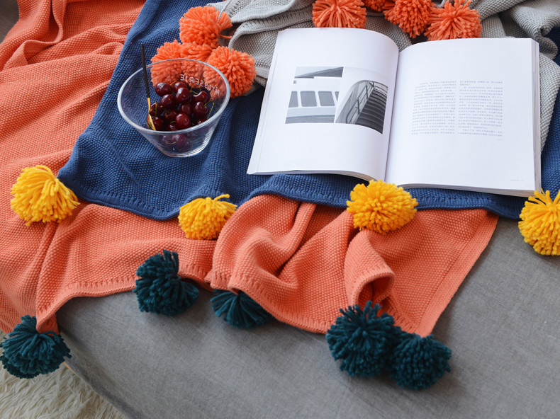 Life should be colorful, the collision of colors brings you fresh vitality [Name] Contrast color ball blanket [Size] 130*160cm [Weight] 1kg [Quality] Qualified product [Material] 100% cotton [Color] Gray, orange, blue [Precautions for use] Wash with warm water, wash light and dark colors separately, do not bleach, do not soak for a long time, lay flat to dry