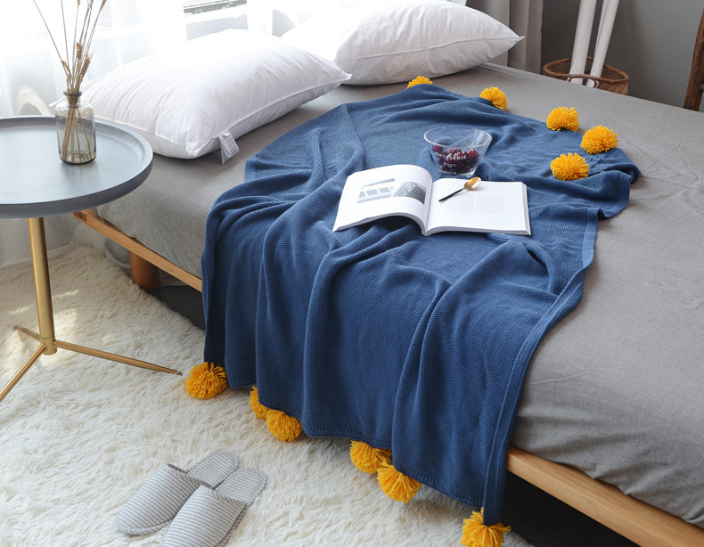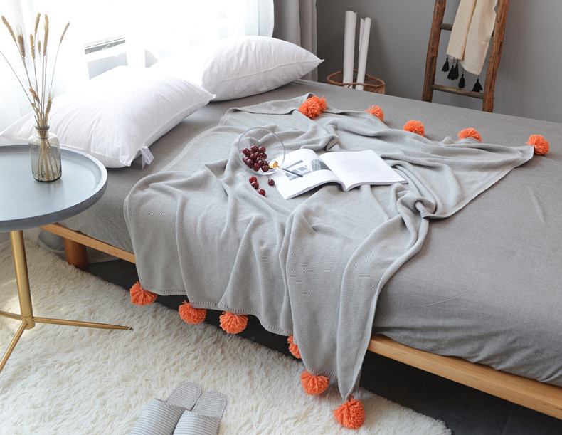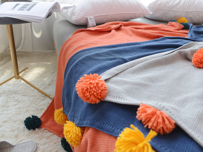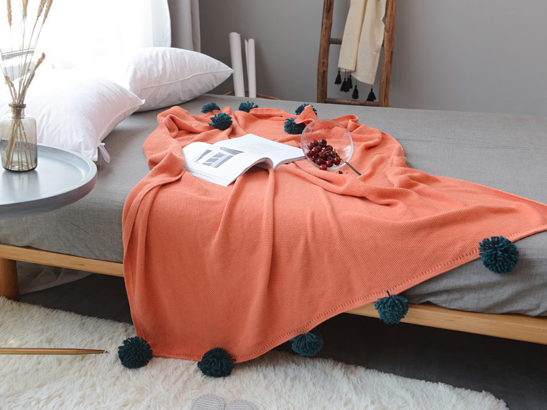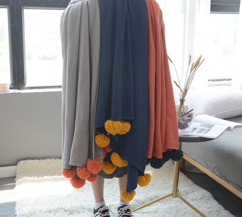 Nordic Pure Color Cotton Colored Ball Knitted Wool Air-conditioning Blanket ins Spring Autumn and Summer All-match Bed Flag Towel