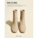 Nude Korean Suede Square Toe Back Zipper Mid Heel Boots