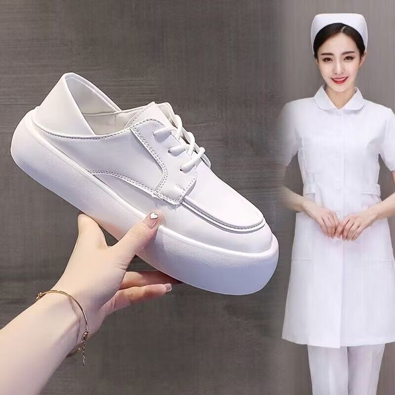 Nurse shoes, thick soled white shoes, new spring and autumn round toe lace up rubber outsole, comfortable work shoes, casual single shoes