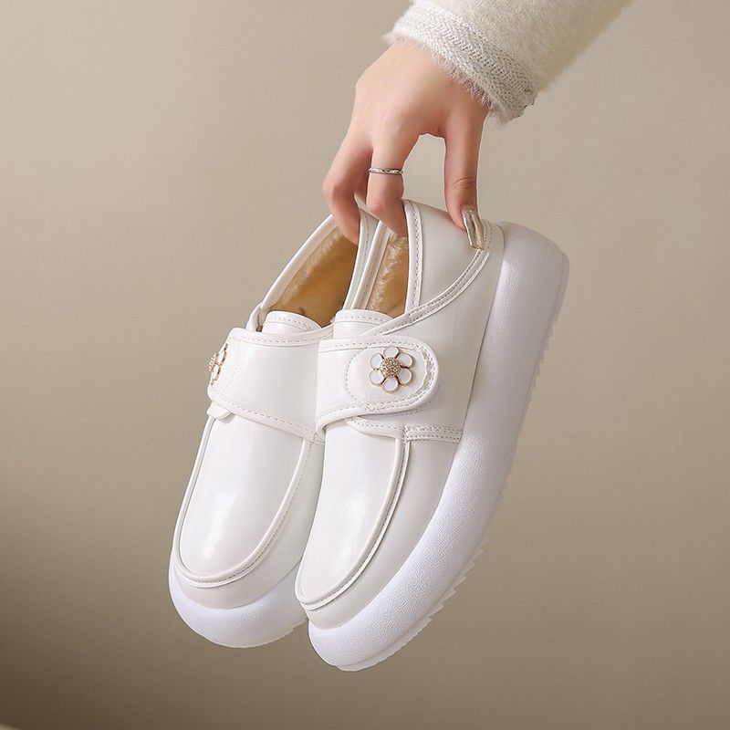 Nurse's shoes, white shoes, women's autumn and winter, with fleece added to keep warm and not tiring, lazy feet, Velcro, one foot flat women's shoes