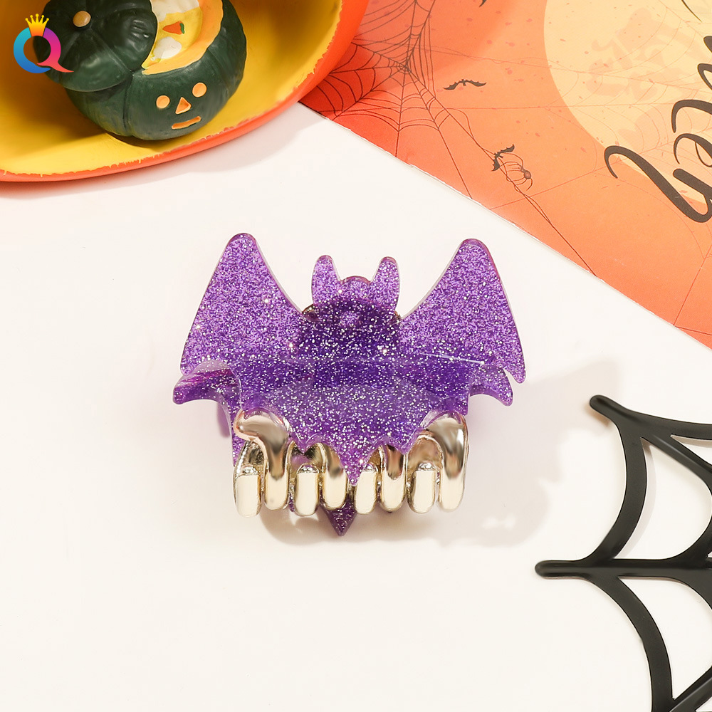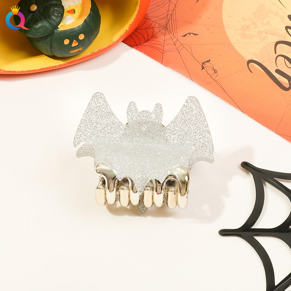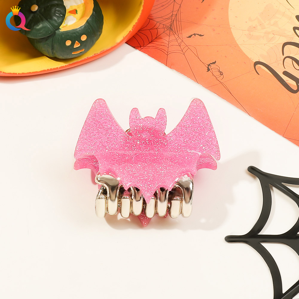 Unique Design:This bat clip features a unique design, perfect for those looking to stand out on Halloween or any other crazy day. Versatile Accessory:This product is not just a hair clip, but also a fashion accessory, adding a touch of elegance to your outfit. Wholesale Availability:Available for wholesale, this clip is ideal for retailers looking to stock up on unique items for the season. Fresh Sweet Style:With its fresh sweet style, this clip is sure to add a sweet touch to your look. Sparkling Powder Finish:The sparkling powder finish gives this hair clip a festive feel, making it a great addition to your holiday wardrobe. Shark Clip Functionality:Despite its stylish design, this clip also serves a practical purpose, functioning as a shark clip.