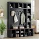 ON-TREND Farmhouse Wooden Style Hall Tree With 6 Hooks, Practical Walnut Storage Bench With Adjustable Shelves, 4-in-1 Entryway Shoe Cabinet With 13 Cubbies For Mudroom, Living Room, Black, 76.7"H